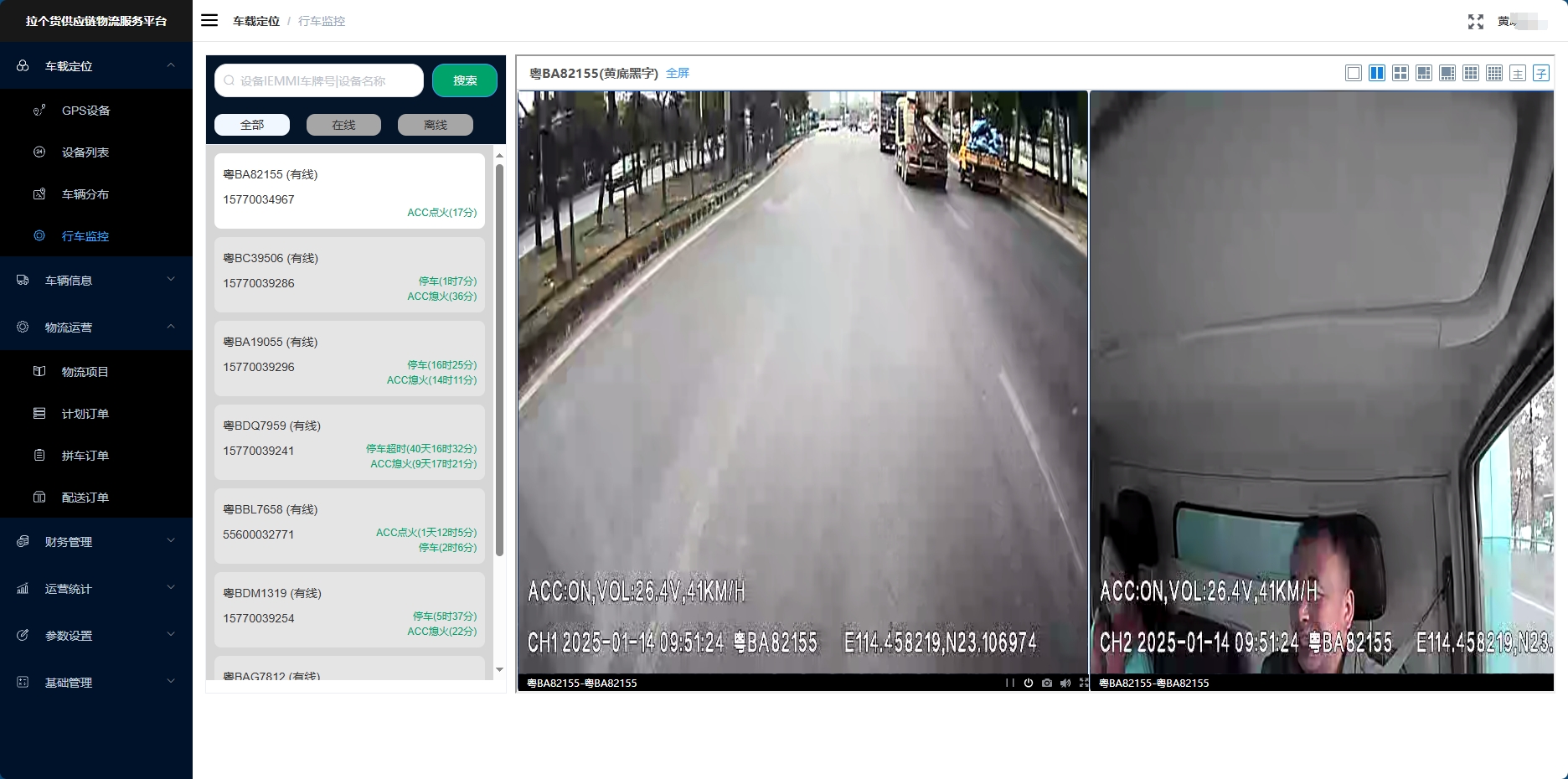 访问车队车辆的行车监控设备,提供实时或回放的驾驶室监控及行车记录画面